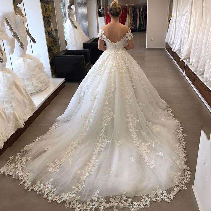 Vintage Off Shoulder Lace Ball Gown Wedding Dresses 2025 Floral Appliques Sweep Train Tulle Designer Wedding Bridal Gowns