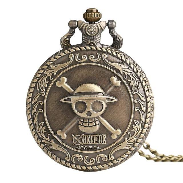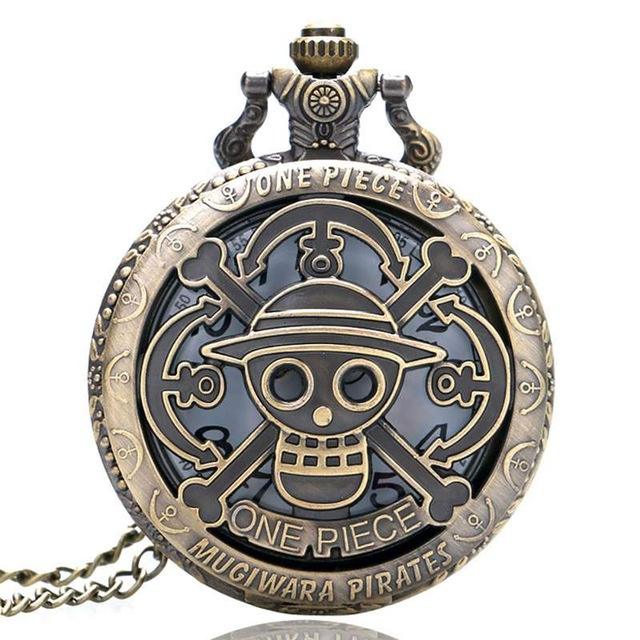 Vintage One Piece Metal Pendant Necklace Luffy Pirate Skull Reloj Pocket Watch with Chain Anime Gift