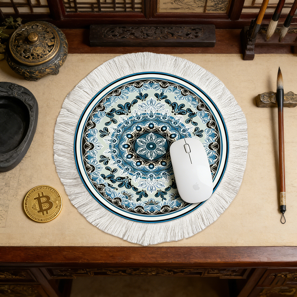 Vintage Oriental Persian Floral Blue Round 240x240mm Gaming Style Fabric Mouse Pad Decorative Carpet for Office Use