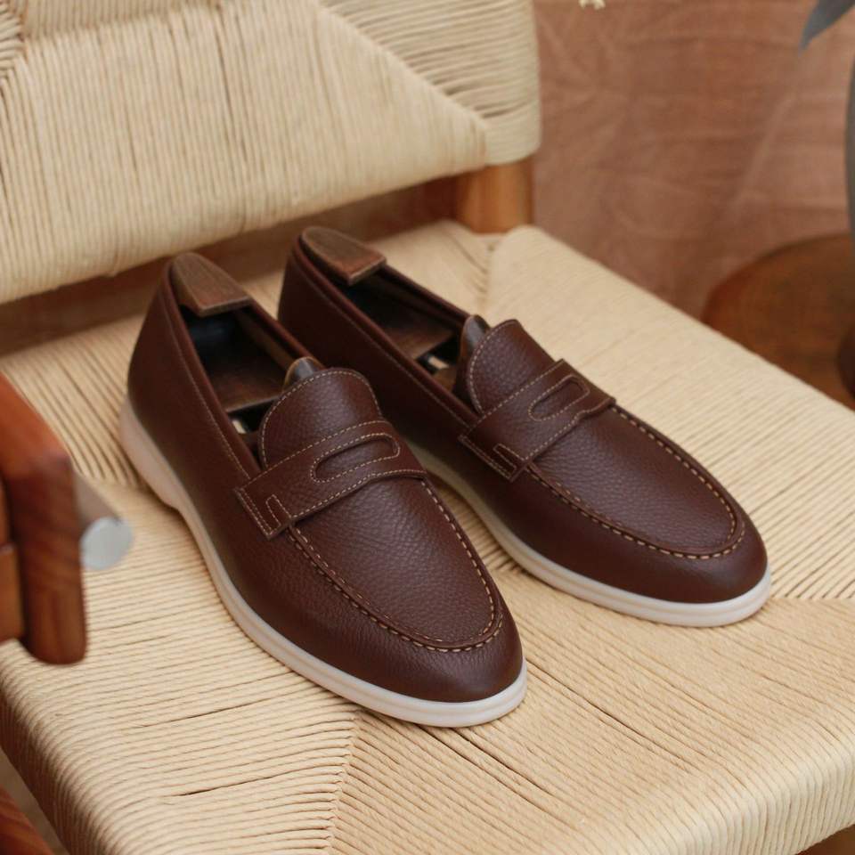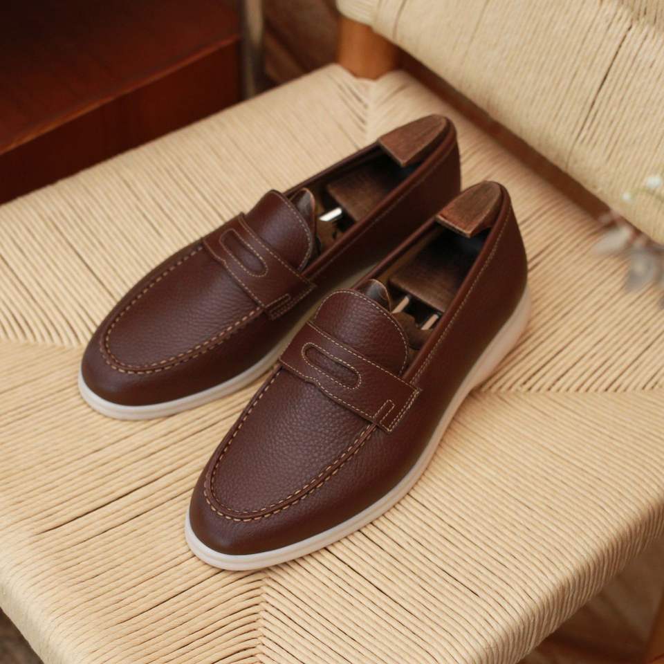 Vintage Pebbled Oil Wax Leather Gentleman Casual Versatile Slip-On Lazy Shoes Lightweight Breathable EVA Midsole Low-Cut Penny