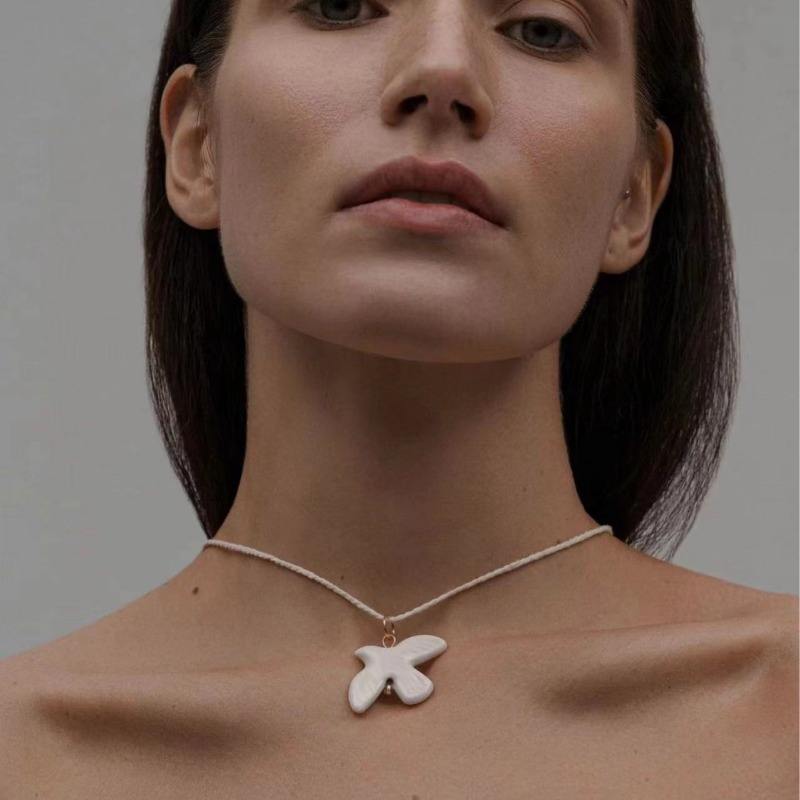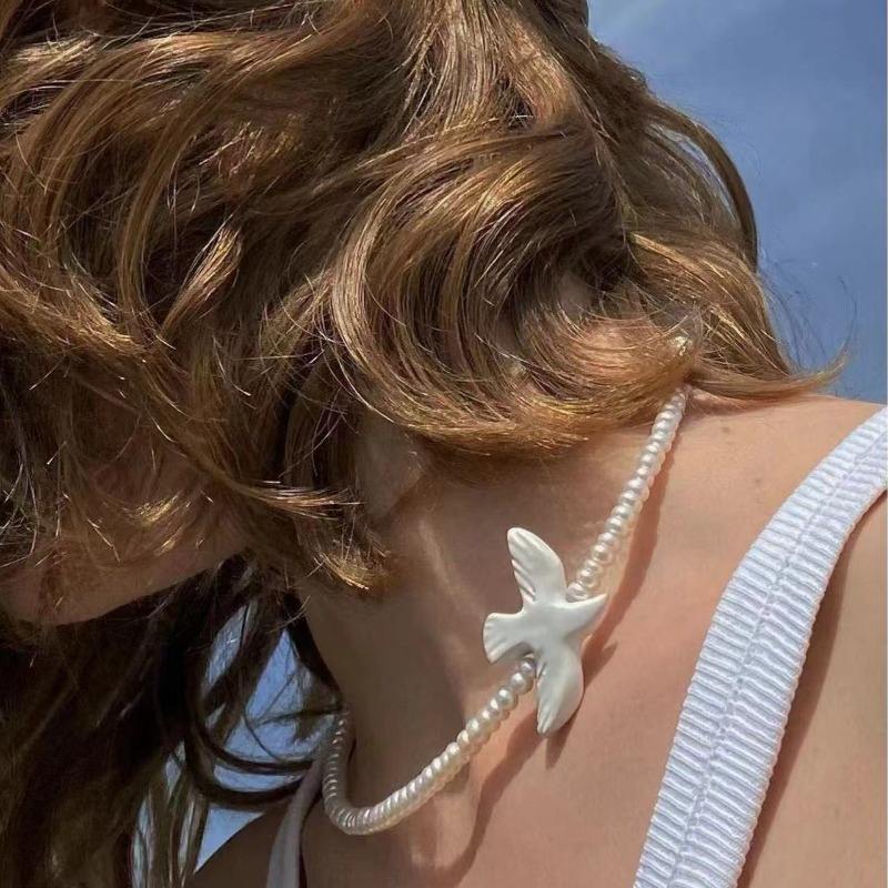Vintage Personality White Peace Dove Olive Branch Pearl Necklace Women's Jewelry Accessories