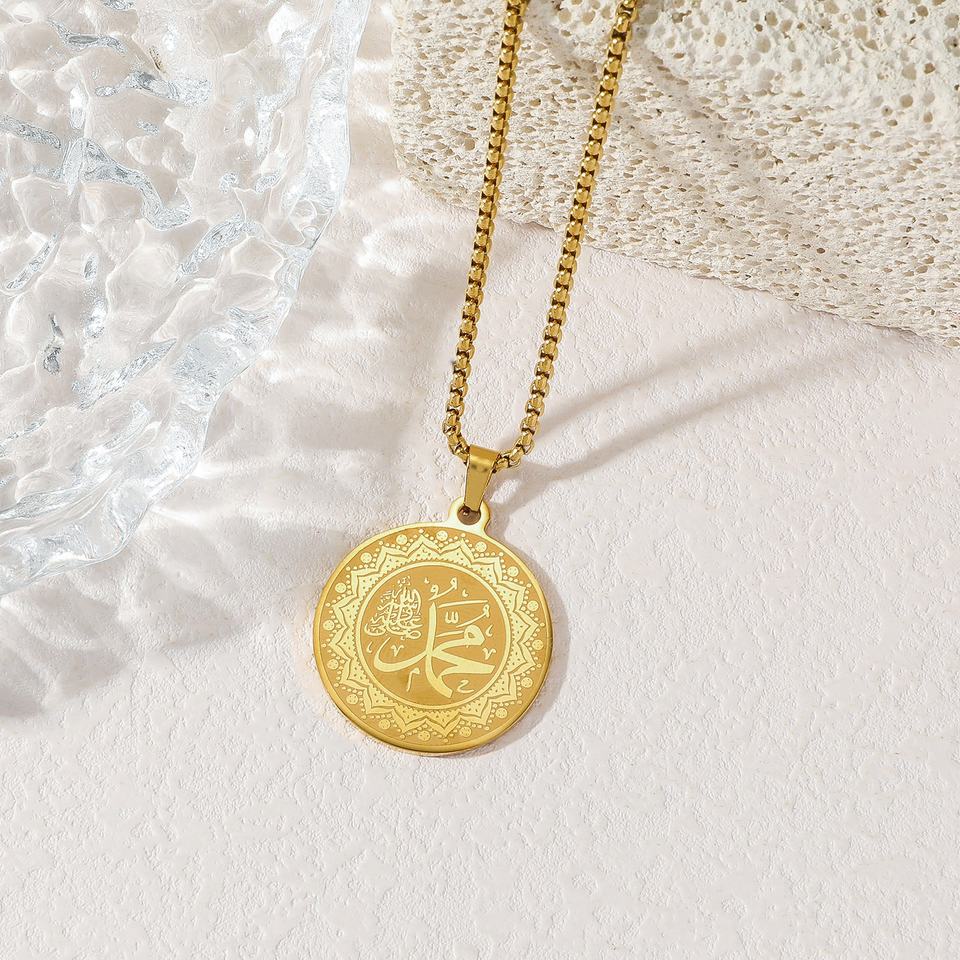 Vintage Personalized God Arabic Islamic Muslim Pendant Calligraphy Eid Stainless Steel Jewelry Necklace Wholesale for Women Men