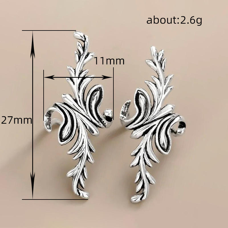 Vintage Plant Design 925 Silver Cuff Earrings For Everyday Wear Unisex White Gold Finish Fine Jewelry