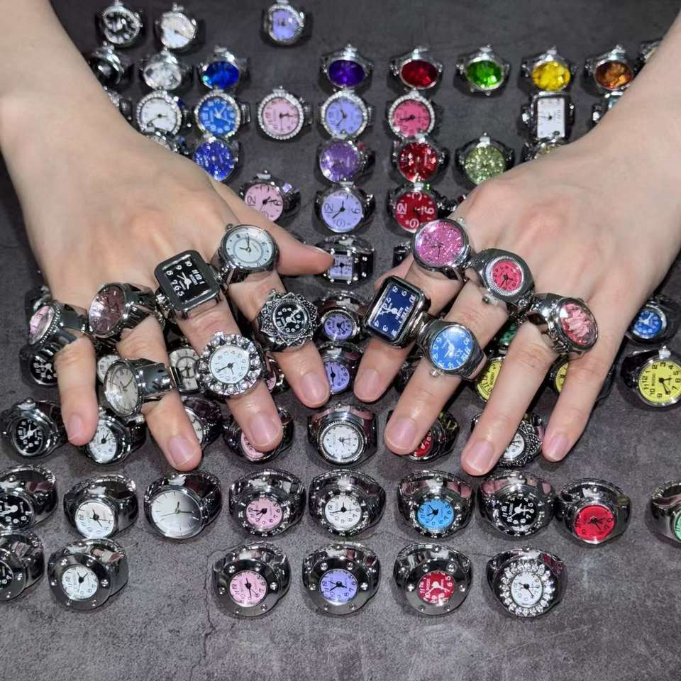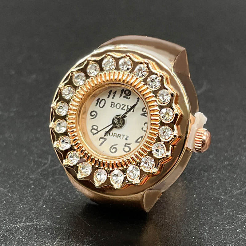 Anello Vintage Punk Placcato Oro Rosa, Regalo di Moda, Anello Orologio Digitale Minimalista, Anello Orologio da Dito Classico al Quarzo