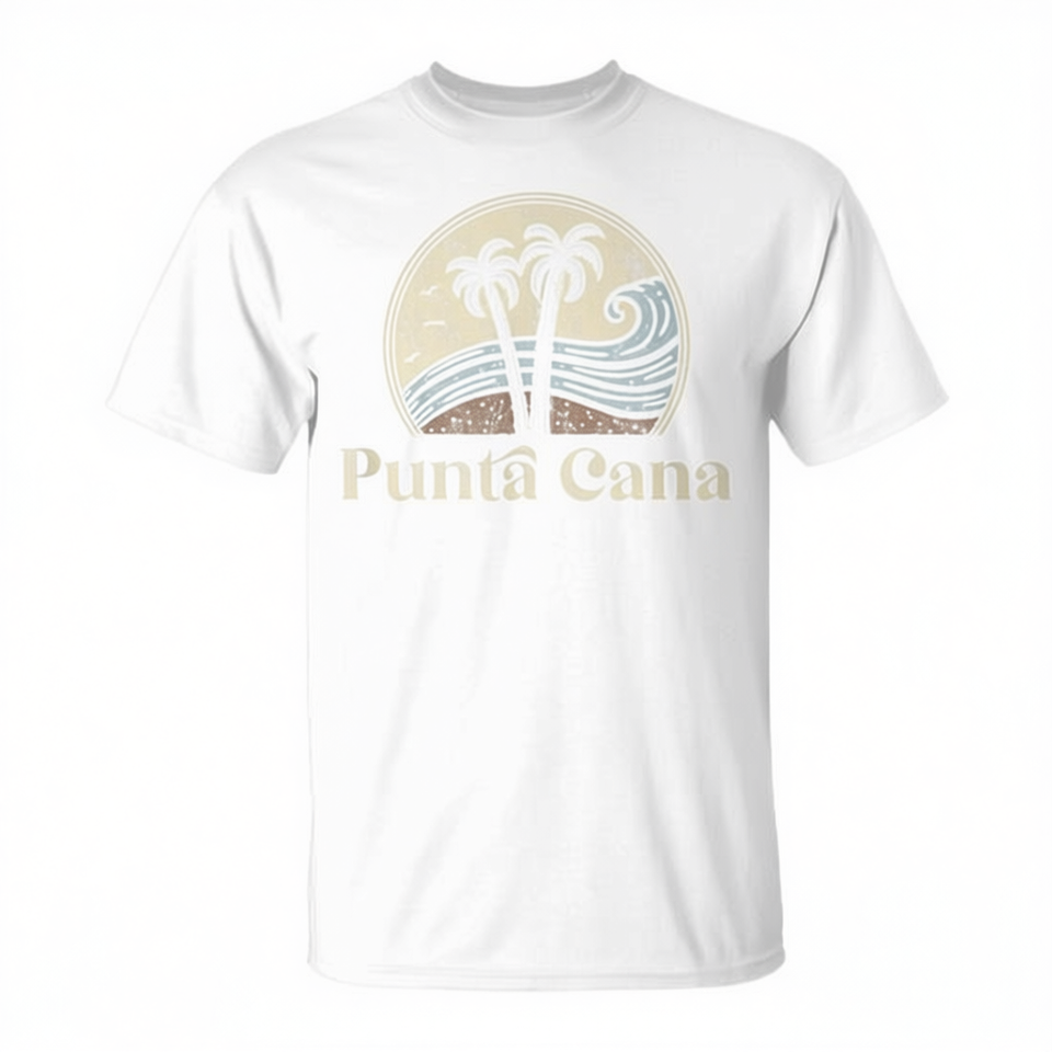 T-Shirt Vintage con Palme di Punta Cana, Moda da Spiaggia della Repubblica Dominicana, Abbigliamento Promozionale Premium