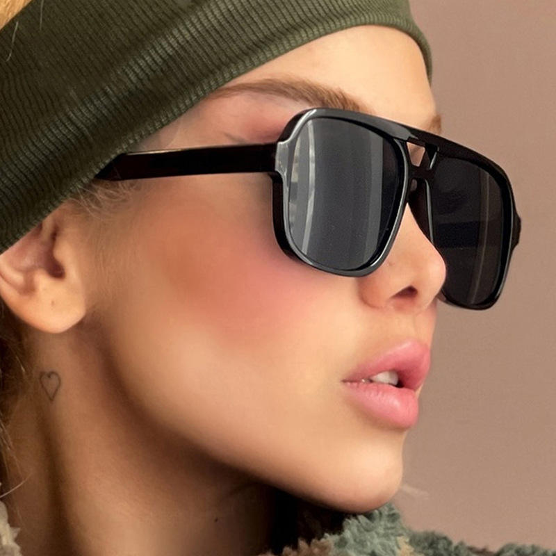 Vintage Retro Double Bridge Square Sunglasses 2025 UV400 Optical PC Frame Custom Logo Women Men Aviation Leopard Sun Shades