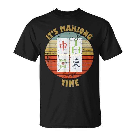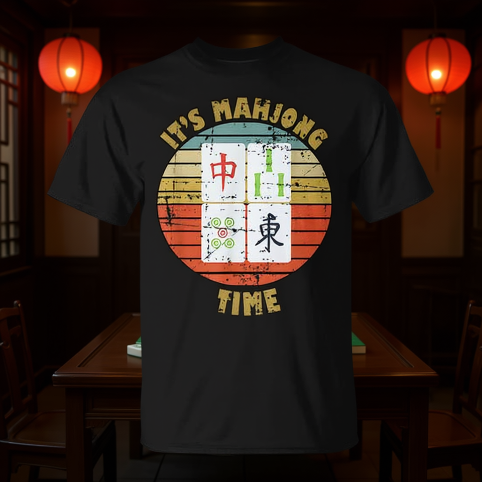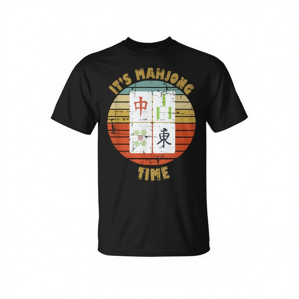 T-Shirt Vintage Stile Retrò con Motivo Mahjong, Abbigliamento Promozionale per Giocatori di Mah-Jongg