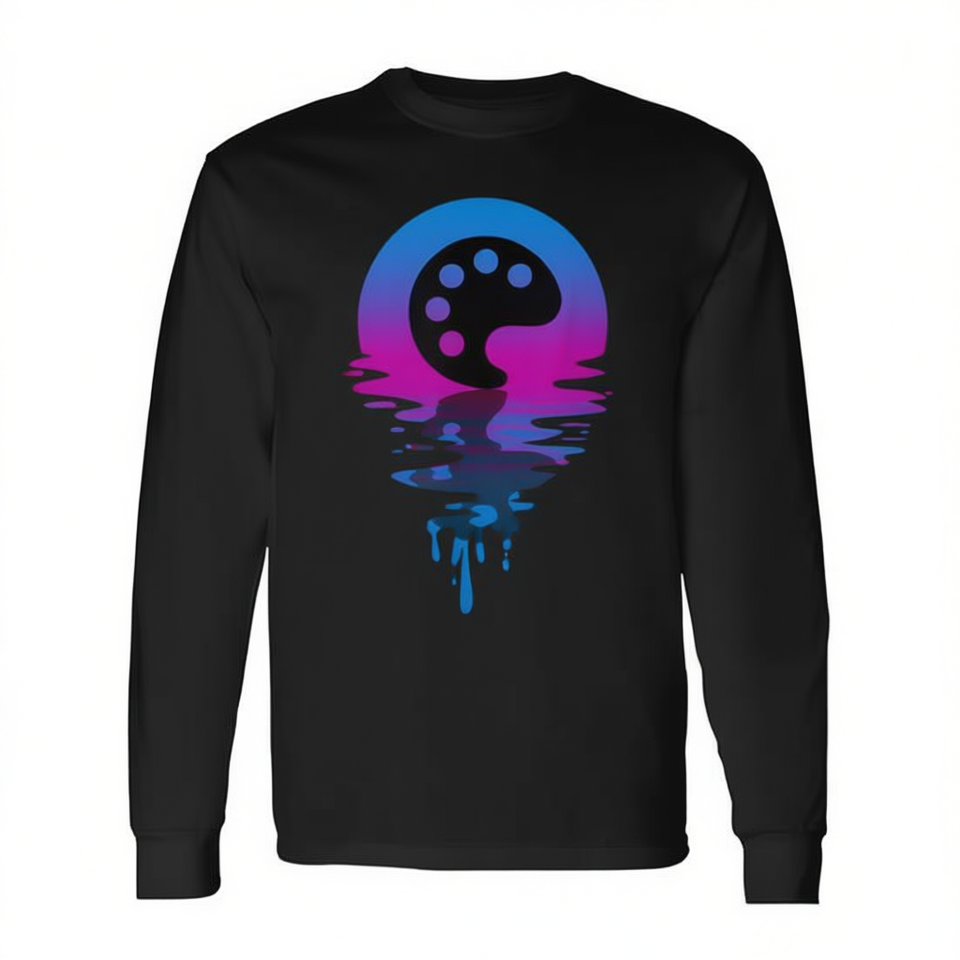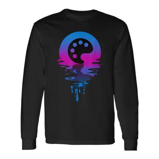 T-shirt a maniche lunghe con paletta di colori vintage retrò Sunset