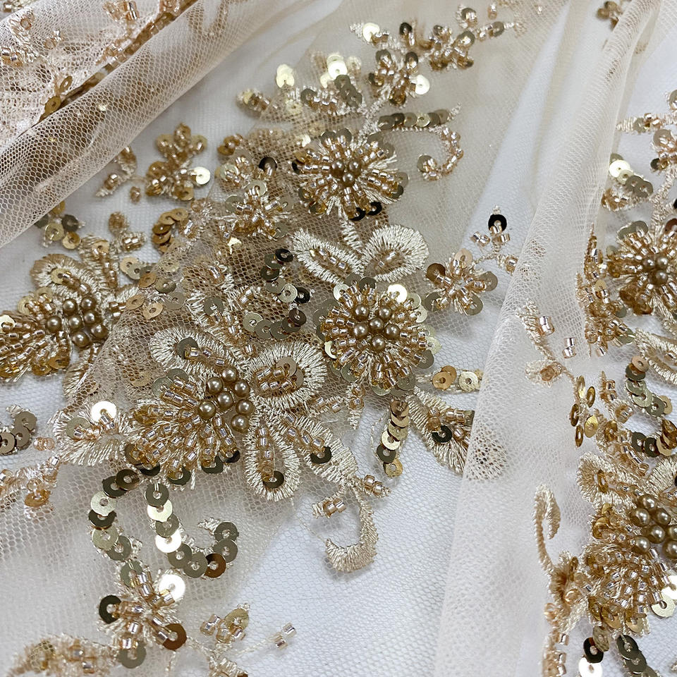 Vintage perline rosa ricamate 3D francese pizzo in metallo paillettes abiti da sposa con motivi floreali progettati per le spose alla moda