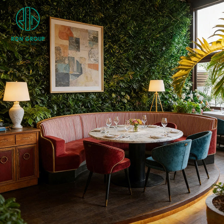 Set di Mobili Vintage con Tavolo Semicircolare in Marmo, Sedie e Divani Imbottiti in Velluto per Caffè, Hotel e Ristoranti