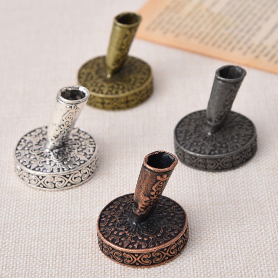 Portapenne in metallo tondo Vintage e penna in metallo con stelo in piuma di tacchino
