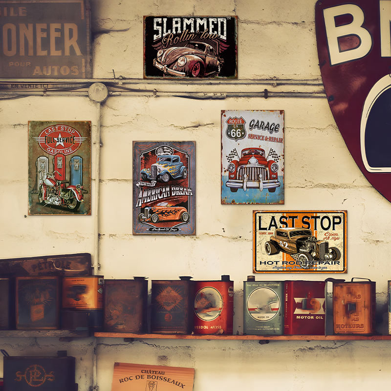 Targa in Metallo Vintage Route 66 Hot Rod, Decorazione Retrò per Garage, Bar, Casa, Stile American Dream Car