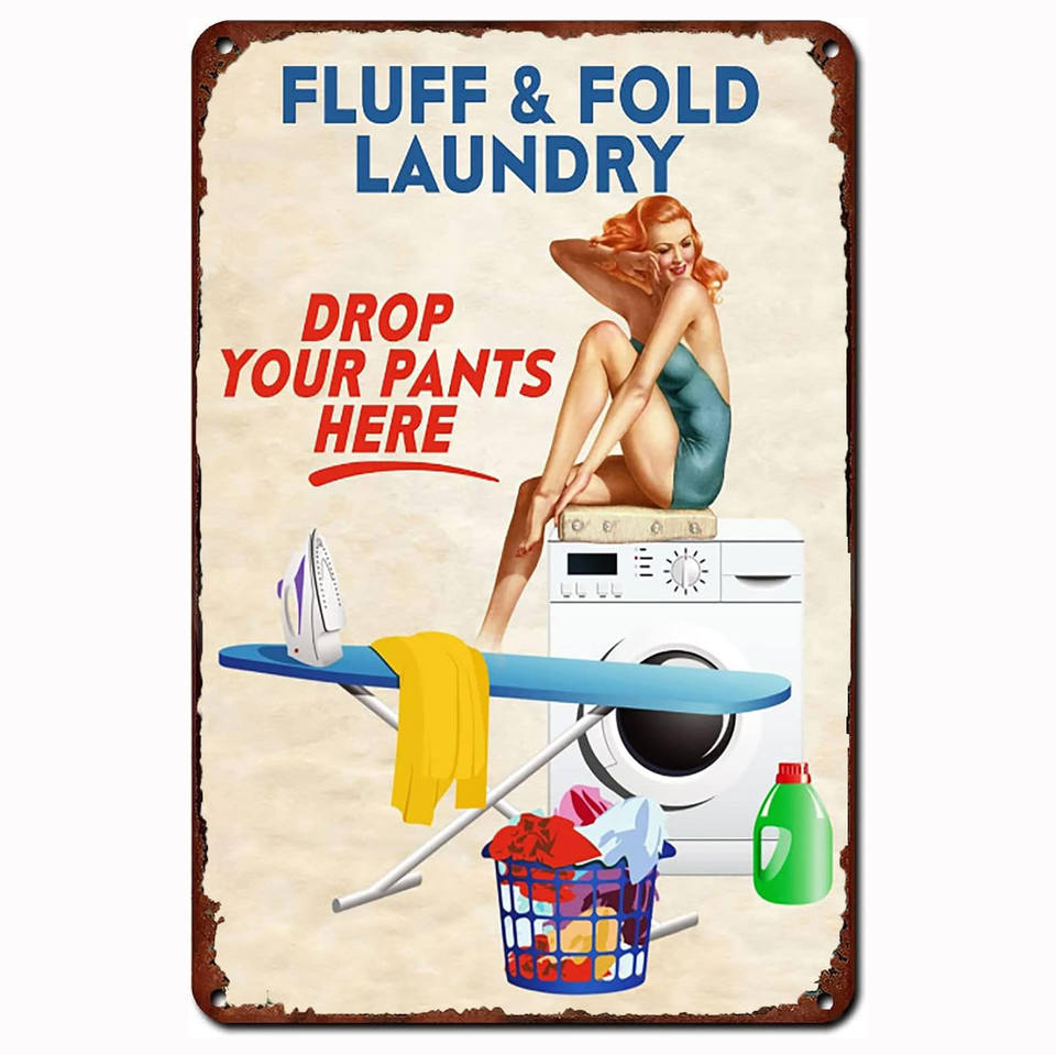 Vintage metallo arrugginito segno Pin up ragazza lavanderia per decorazione della parete per bar ristoranti caffè pub 8x12 pollici