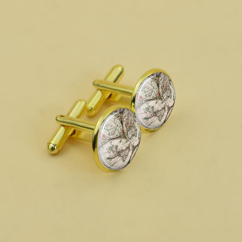 Gemelli Vintage in pelle di pecora con mappa del mondo oro in metallo gemelli formali per uomini