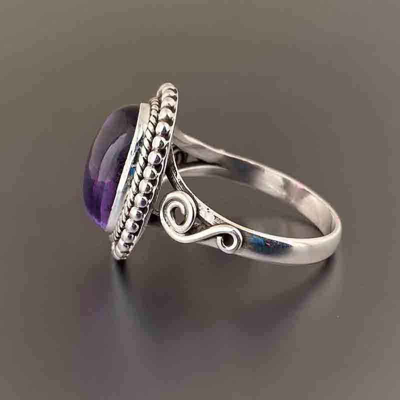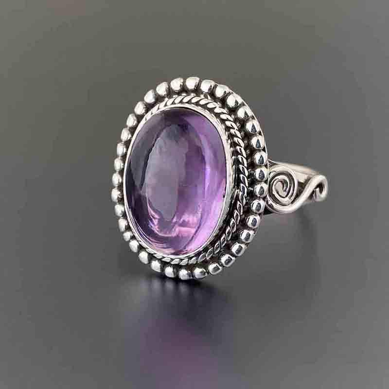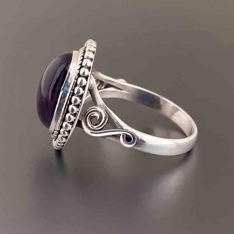 Vintage Silver Ring Oval Amethyst Bezel Setting 925 Sterling Silver Women's Jewelry T0636