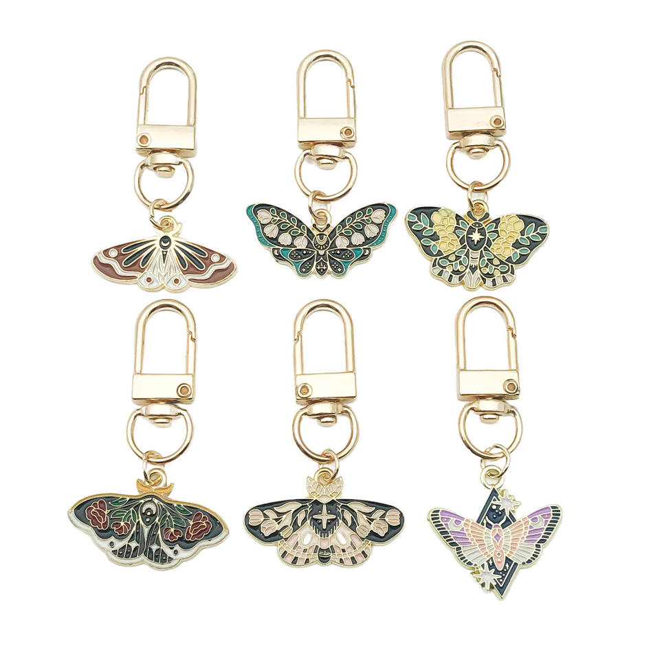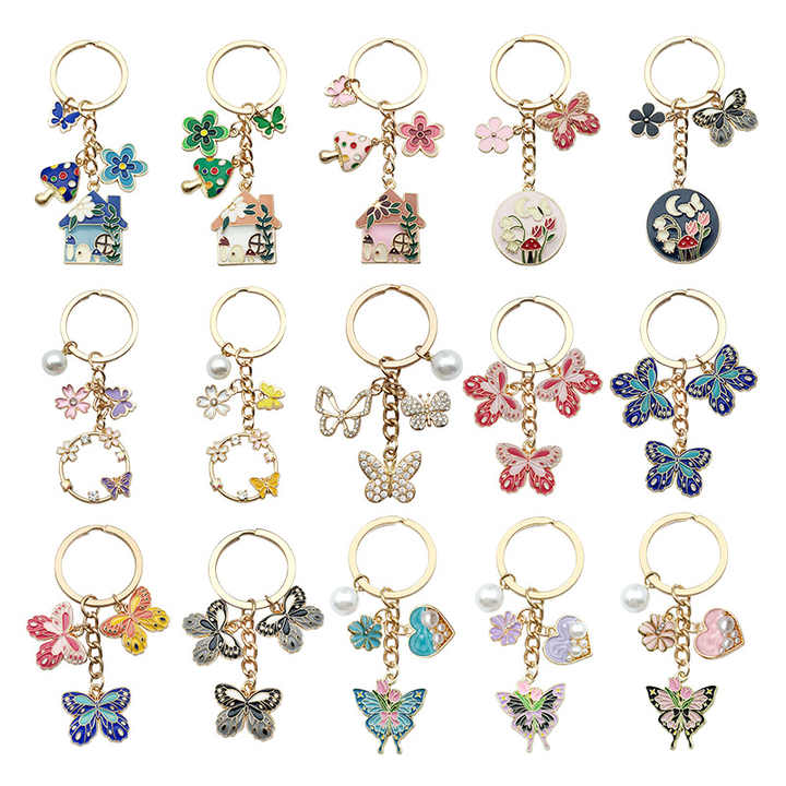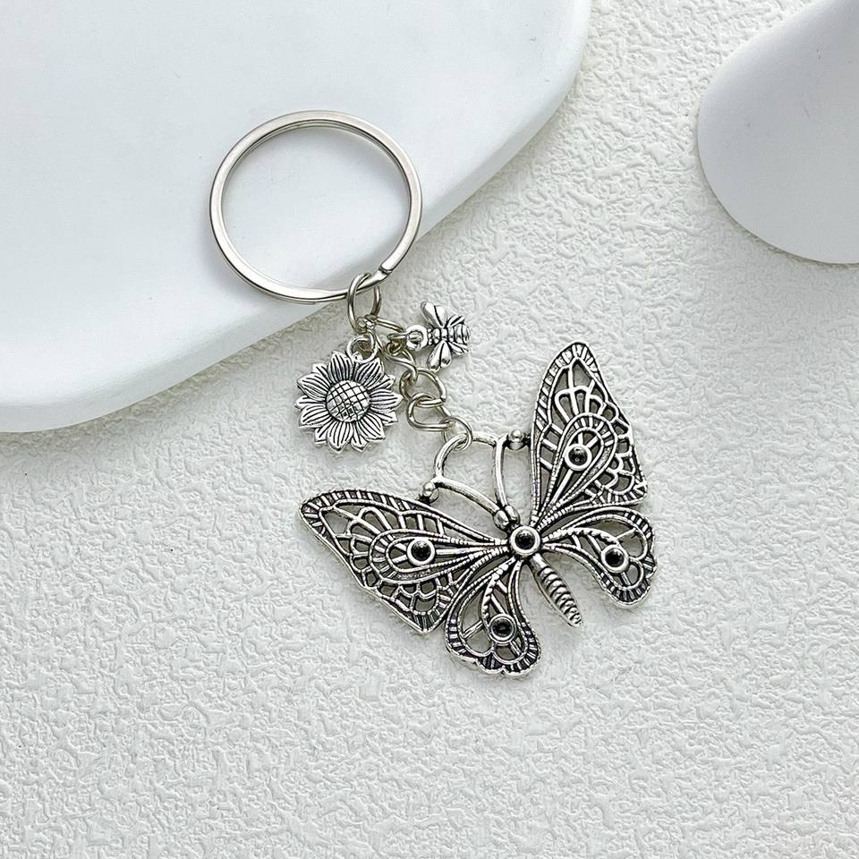 Vintage Small Flower Series Bag Charms Colorful Butterfly Metal Keychain Set for Couples and Best Friends