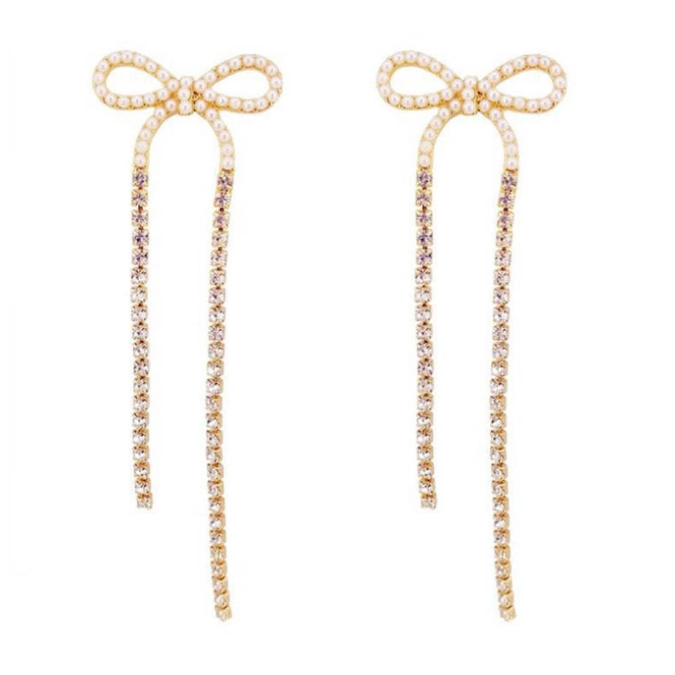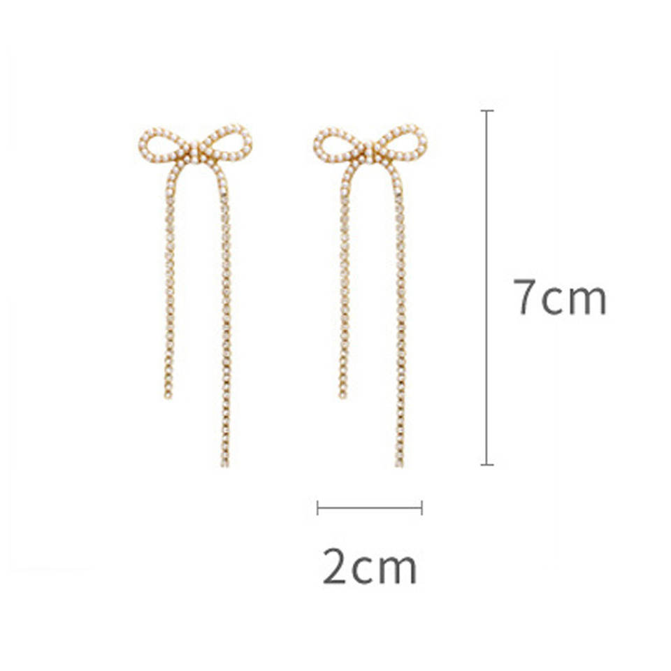Vintage Sterling Silver Pin 925 Women Cubic Zirconia Small Bowknot Bow Tie Drop Long Dangle Crystal Earring