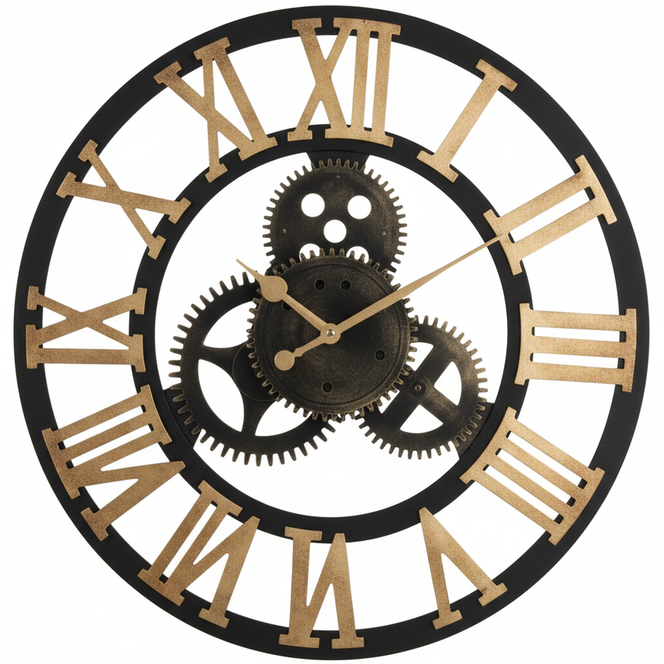 Vintage Style 6682A Wall Clock Exposed Gears Black Gold Finish Large Size Analog Display for Home Decor Square Scenic Wholesale