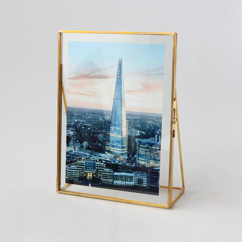 Vintage Style Brass and Glass, Metal Floating Picture Frame with Locket Closure, for Photos, Art, More, Tabletop Display