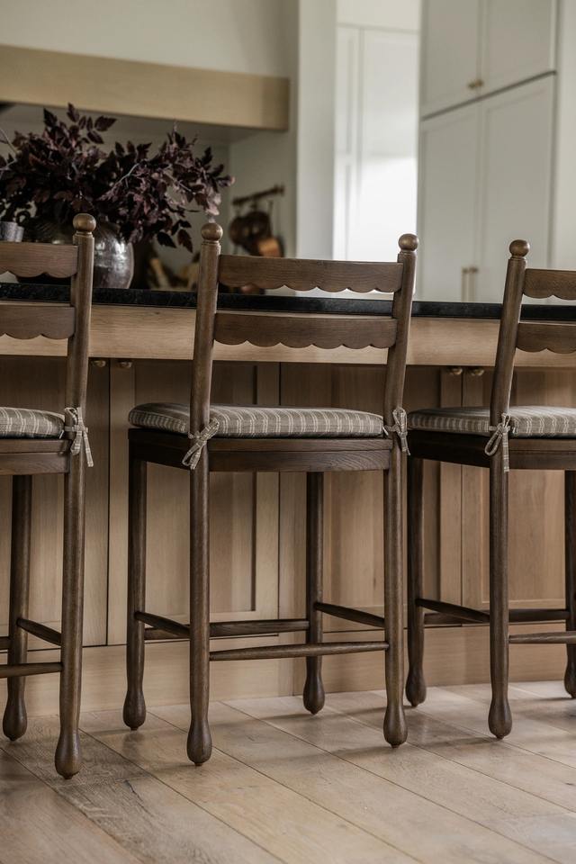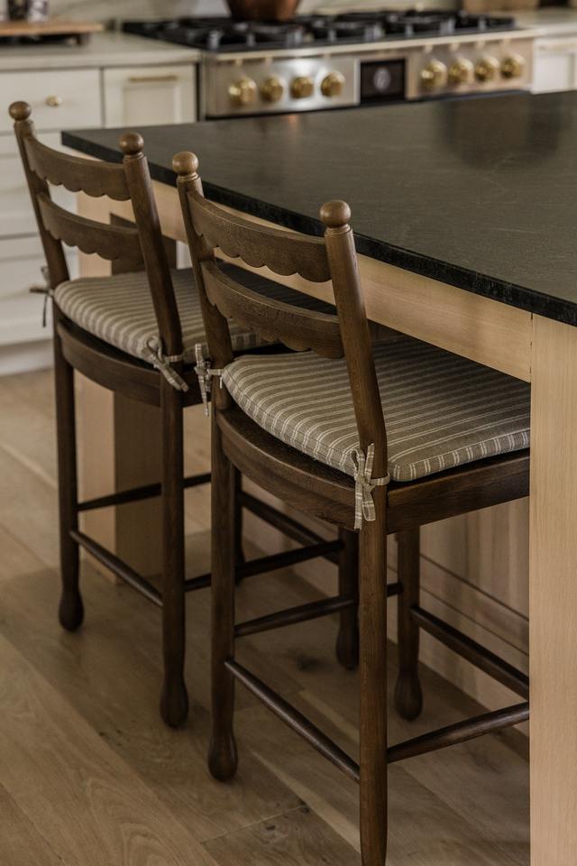 Sgabelli da bancone in stile vintage con schienale scanalato in legno e seduta imbottita a righe, sedia da tavolo da pranzo