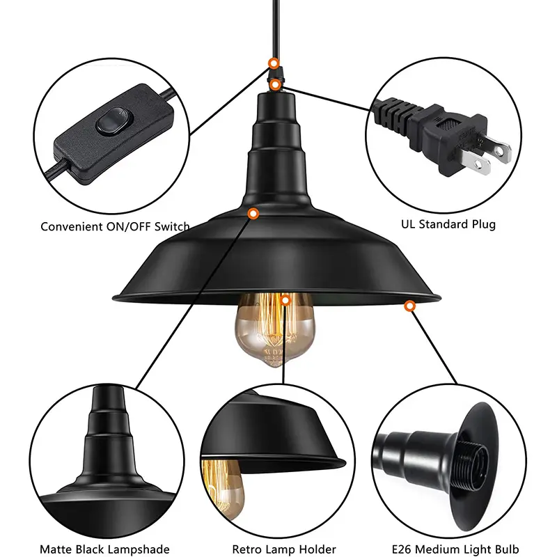 Stile Vintage paralume in vetro lampada a sospensione E26 E27 americana retrò lampadario ristorante con patch cord