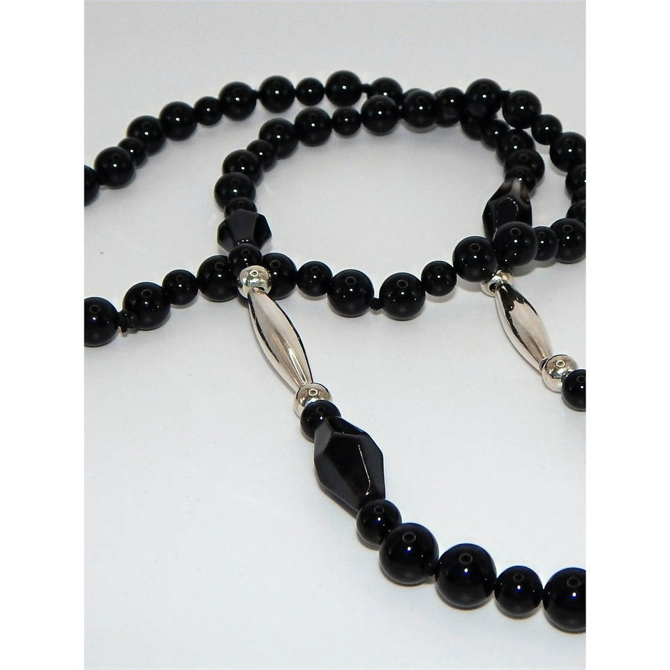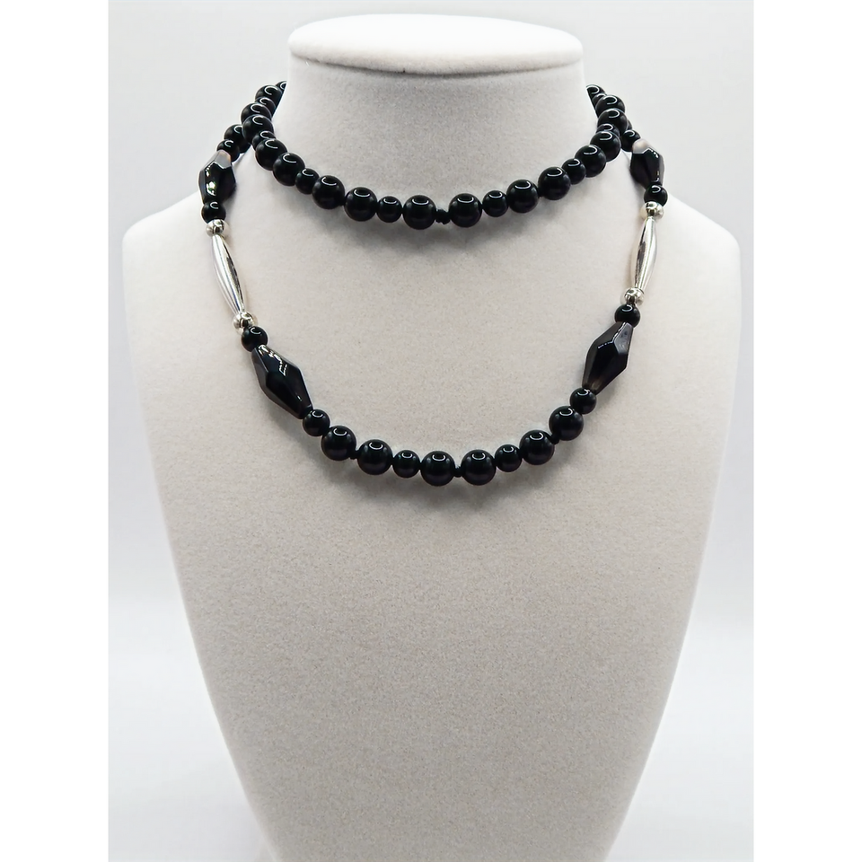 Vintage Trendy .925 Sterling Silver Necklace with Black Onyx Diamond Pearl 18K Gold Chains for Engagement