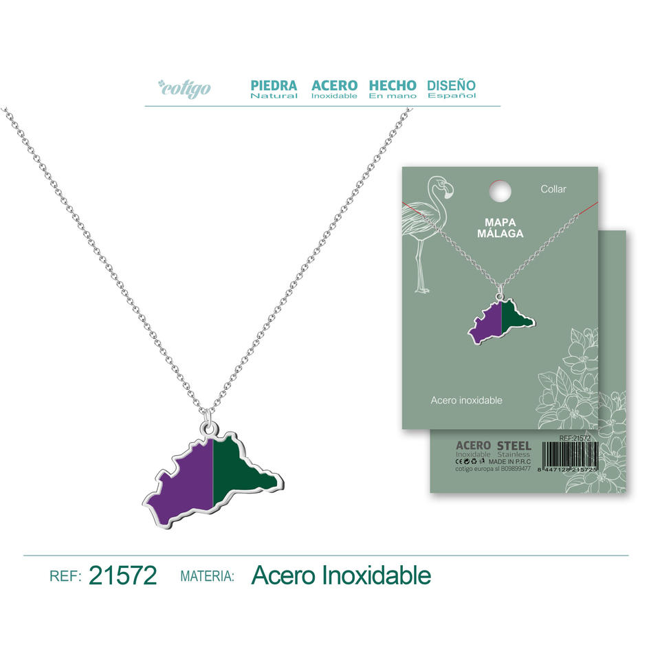 Ciondolo Vintage alla Moda con Mappa di Malaga, Placcato Oro, Catena in Acciaio Argentato, Rame con Diamanti e Perle, Marca Cotigo, Origine Cina, Ideale come Regalo