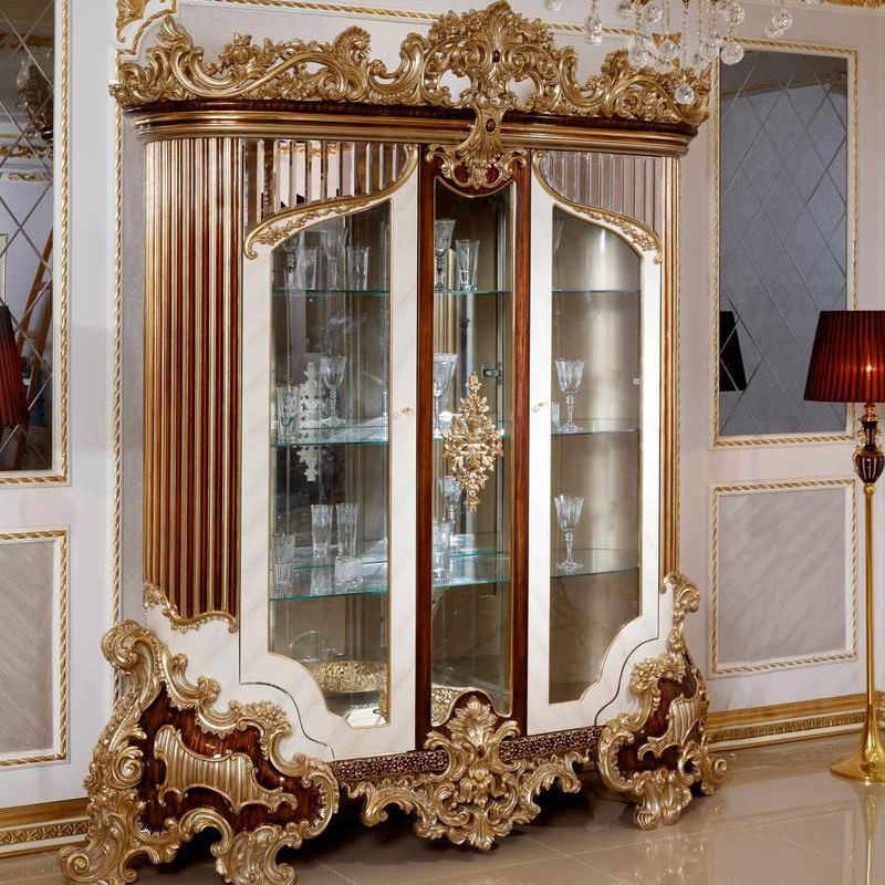 Vintage Turkish High Quality Wood Wine Cabinet with Glass Classic Luxury Showcase for Living Room Furniture