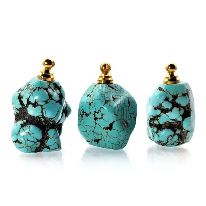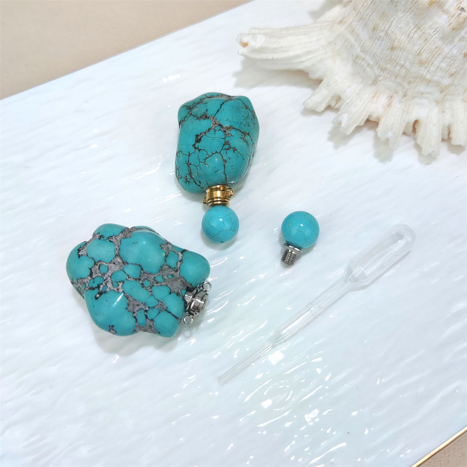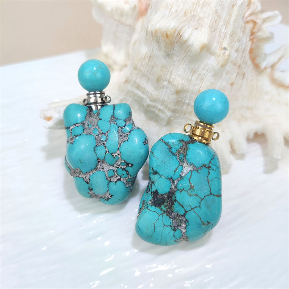 Vintage Turquoise Hanging Car Perfume Bottle Pendant Nature Raw Turquoise Stone Essential Oil Bottle Aroma Diffuser Jewelry