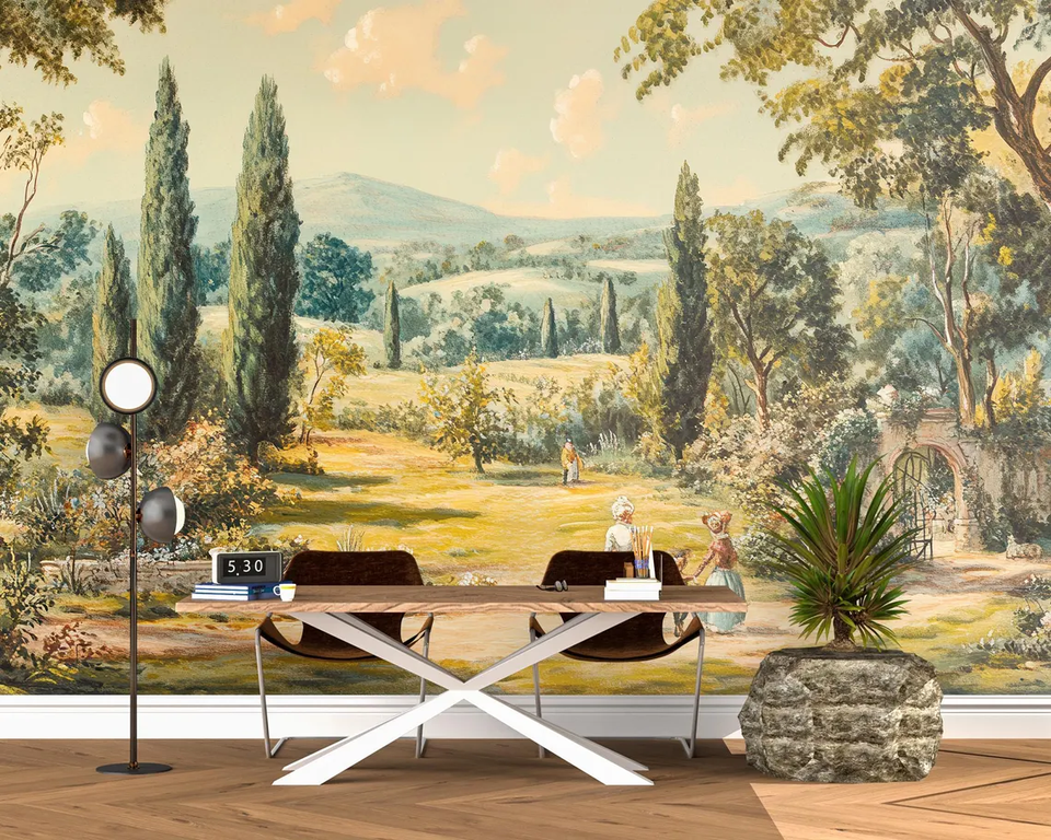 Vintage Tuscan Landscape Oil Painting Wallpaper Mural Classic European Countryside Wall Decor Living Room Elegant Home Interior