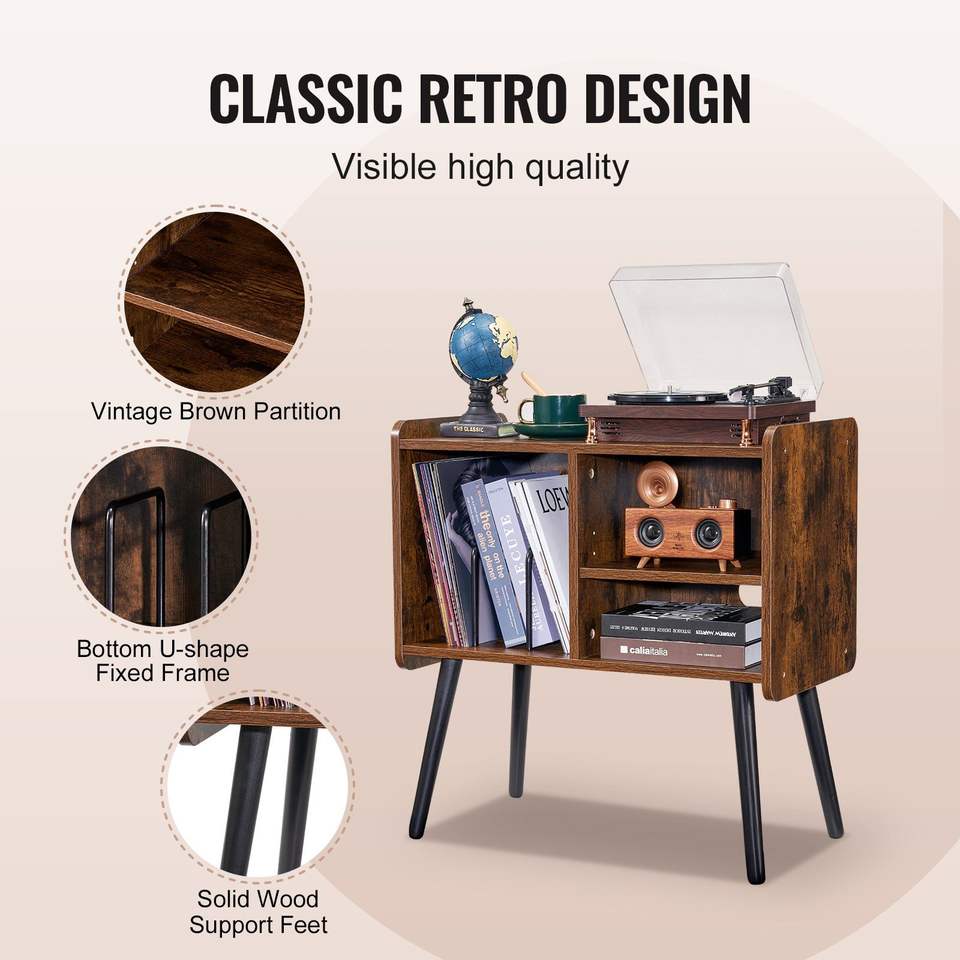 Mobiletto Porta Dischi in Vinile Vintage con Ripiani Rimovibili, Capacità 100 Album, Supporto per Giradischi, Porta CD, Lettore di Dischi