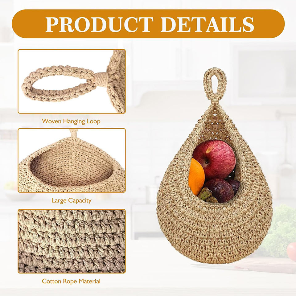 Vintage Wall Hanging Eco-Friendly Fruit Vegetables Storage Basket Odorless Several Sizes Hand Woven Cotton Rope Plant Holder for