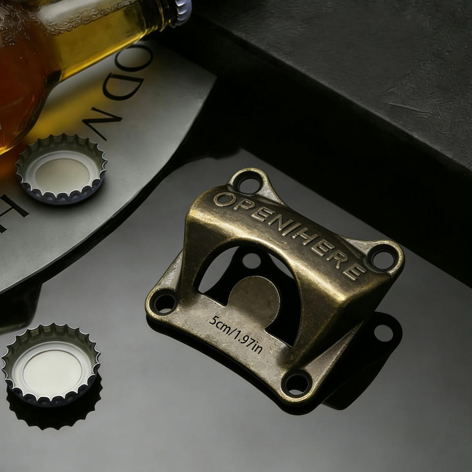 Apribottiglie da Parete Vintage, Apribottiglie Retrò in Bronzo con Scritta 'OPEN HERE', Accessorio da Bar Fisso per Casa, Cucina, Pub