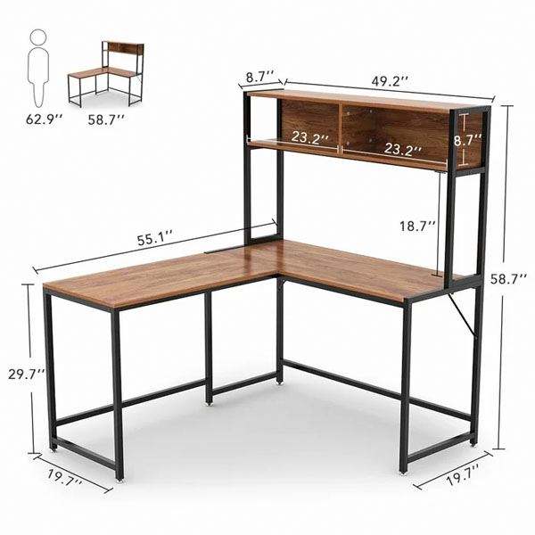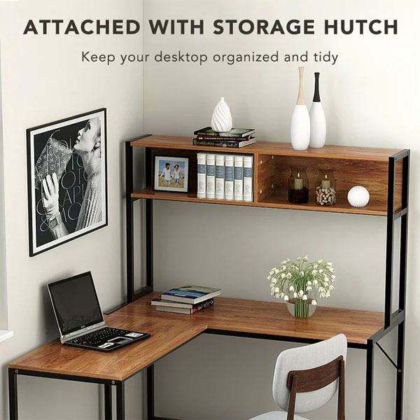 Vintage Noce Lavin a Forma di L Scrivania con Hutch Studente Gaming Scrittura Stazione di Lavoro A Casa Piccolo Ufficio Noce Massello Tavolo scrivania