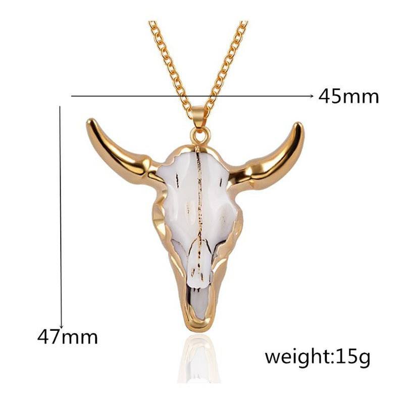 Vintage Western Cowboy-Style Bull Head Pendant Necklace - Faux Bovine Bone Gold-Plated Large Pendant Unisex Jewelry