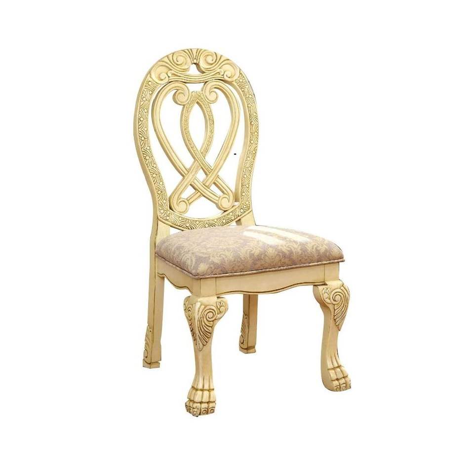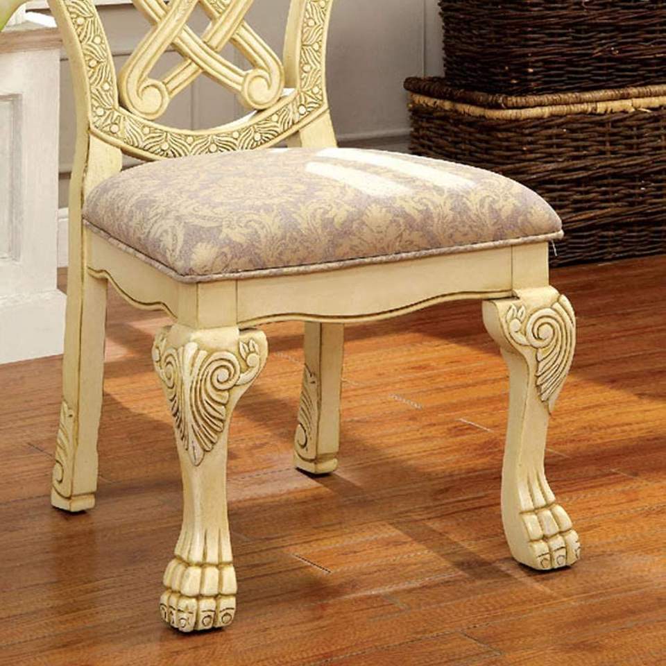 Vintage White Solid Wood Dining Chairs Formal Majestic Traditional Design with Intricate Carved Details Side Chair Set of 2