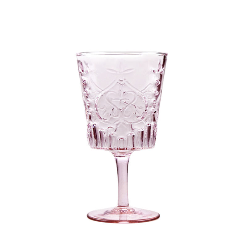 Vintage Wine Glass Goblet Pink Water Goblets pink Drinking Glasses for Wedding Retro Embossed Glassware Reception Grand Event