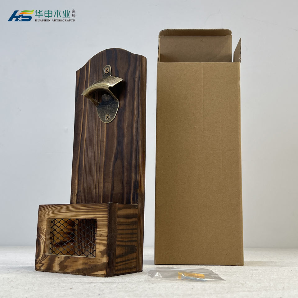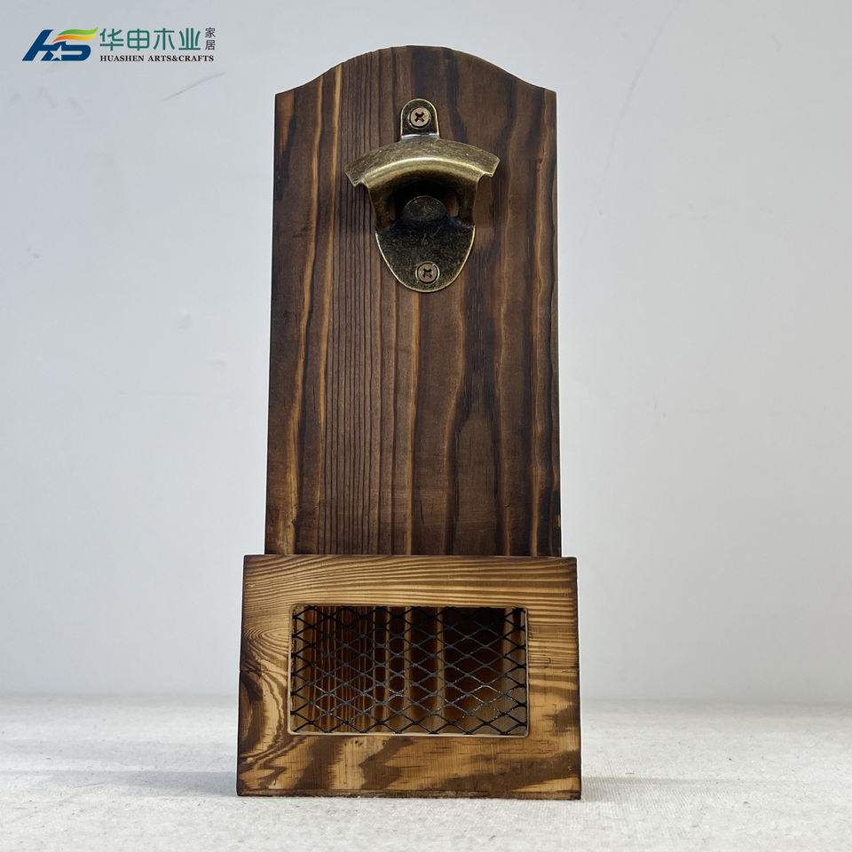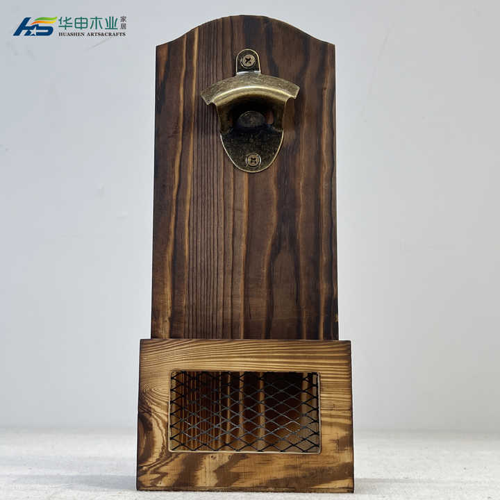 Vintage Wooden Wall Mounted Beer Barrel Keg Bottle Opener With Cap Collector Catcher Ideal Gift for Men
