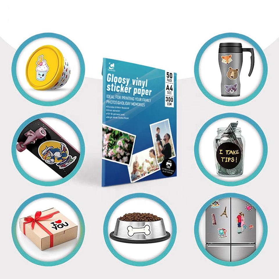 Carta Adesiva in Vinile per Stampanti Inkjet A4 Lucida per Adesivi Stampabili Trasparenti e Opachi Fogli Impermeabili Personalizzati