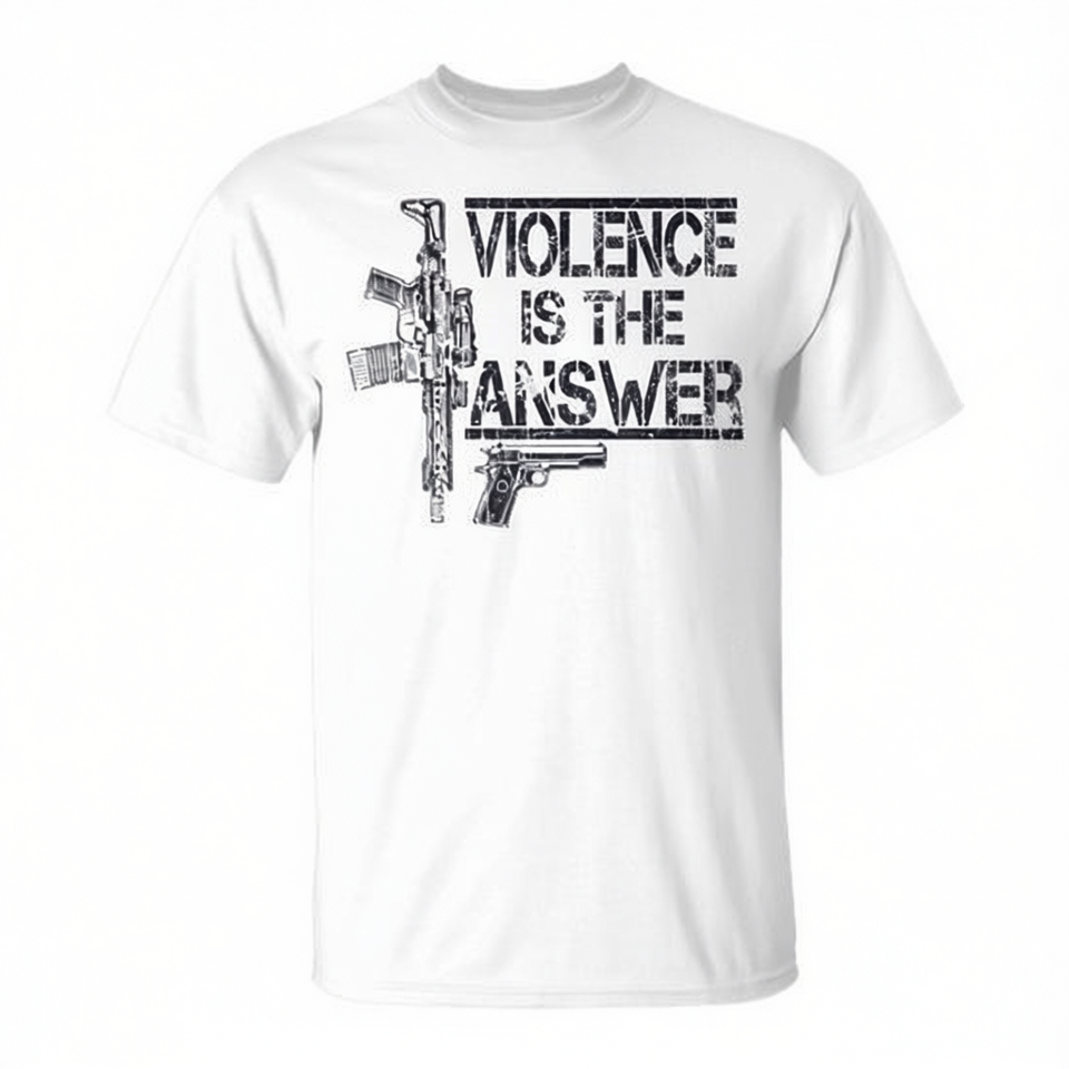 T-shirt con stampa grafica bianca da uomo Violence Is The Answer