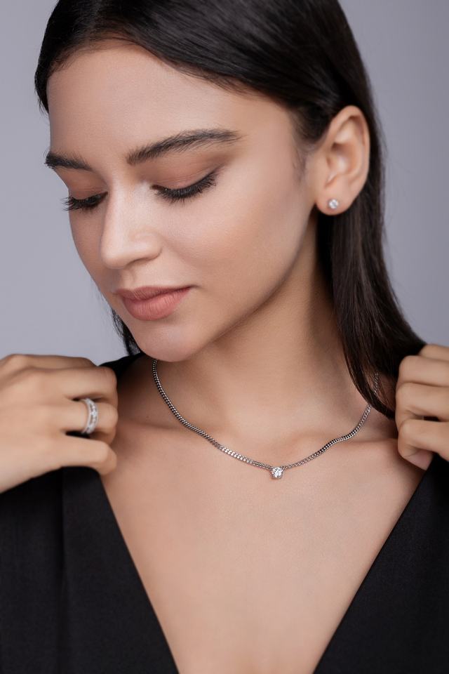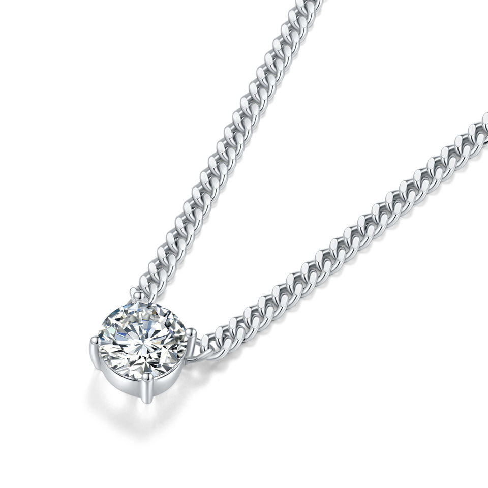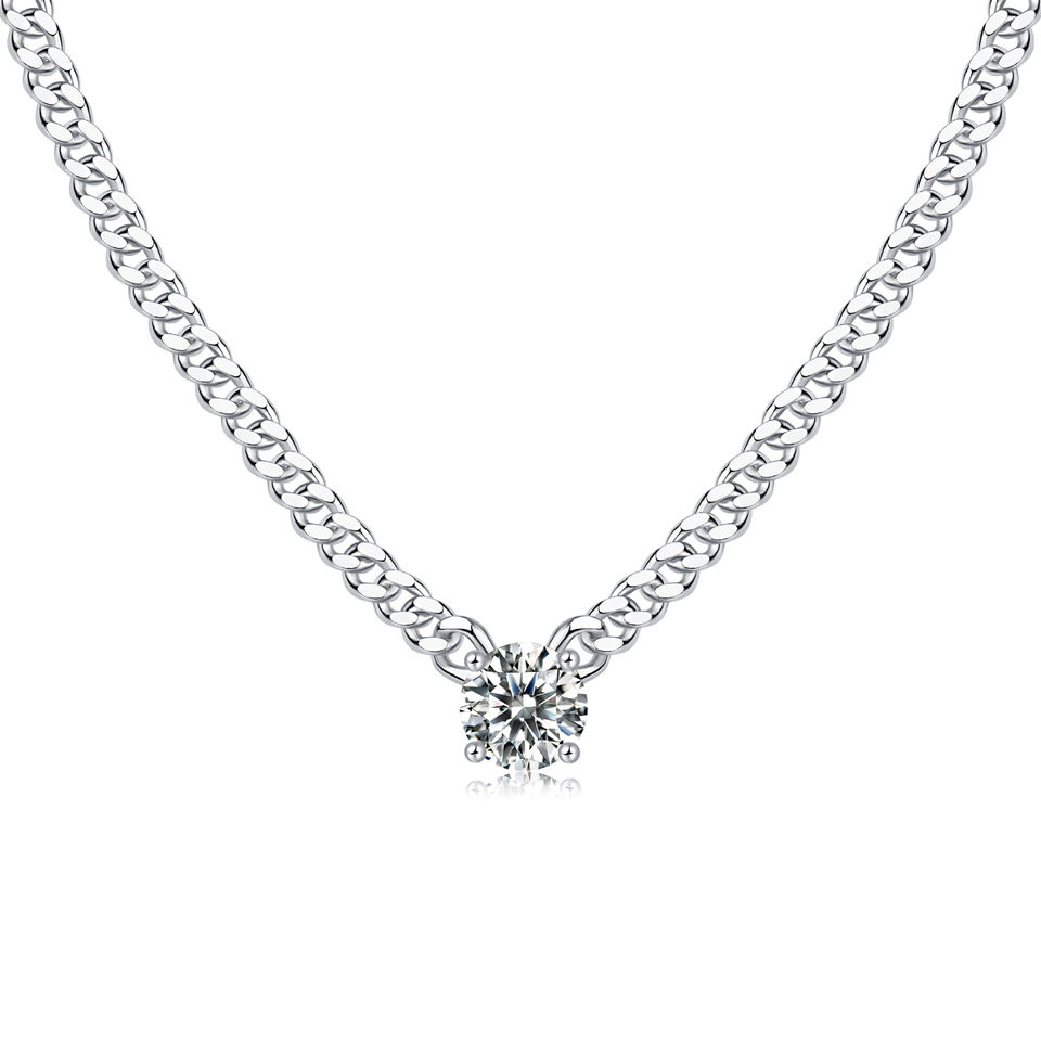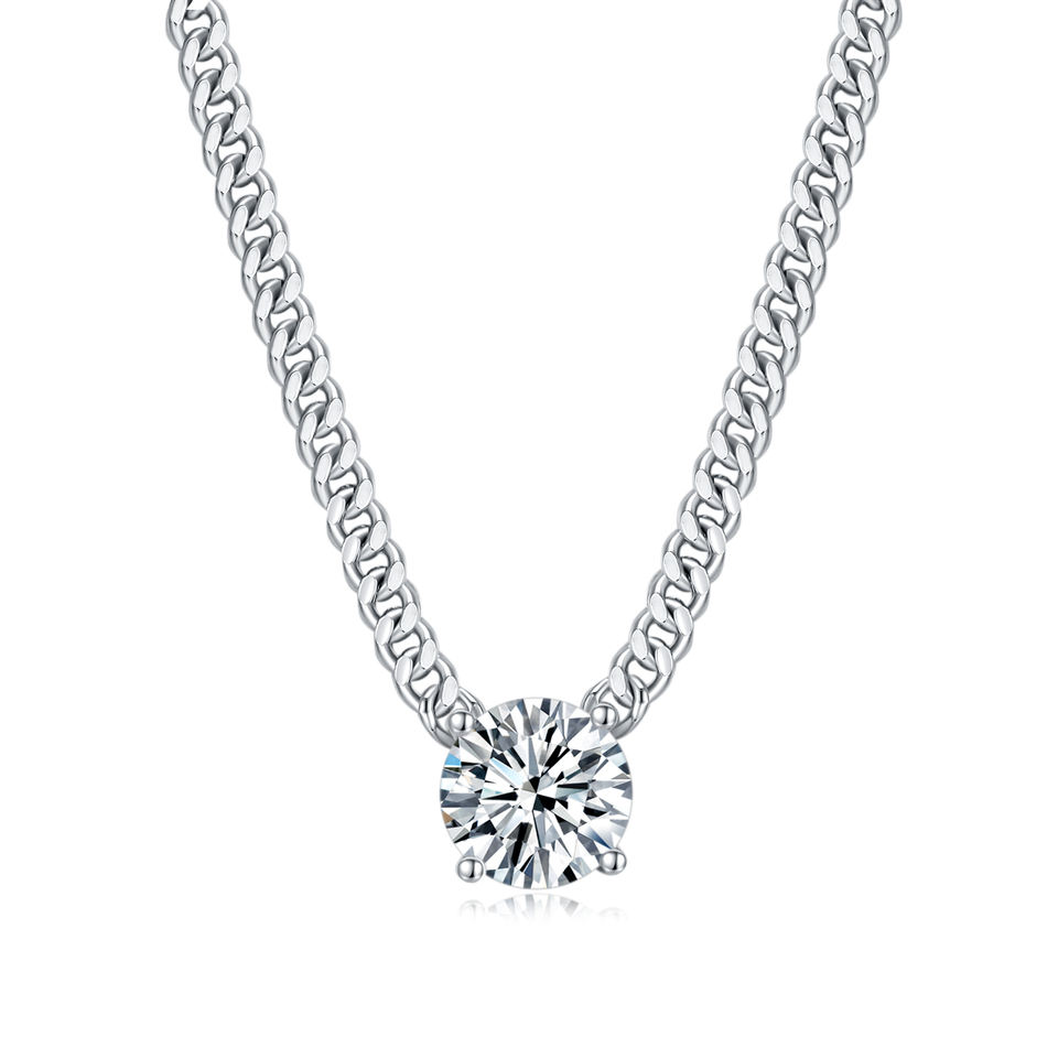 Viral Trend Cuban Link Silver Chain with Brilliant Moissanite Solitaire Luxury Style for Wedding & Party Gifts