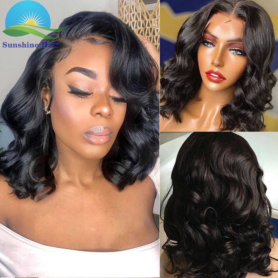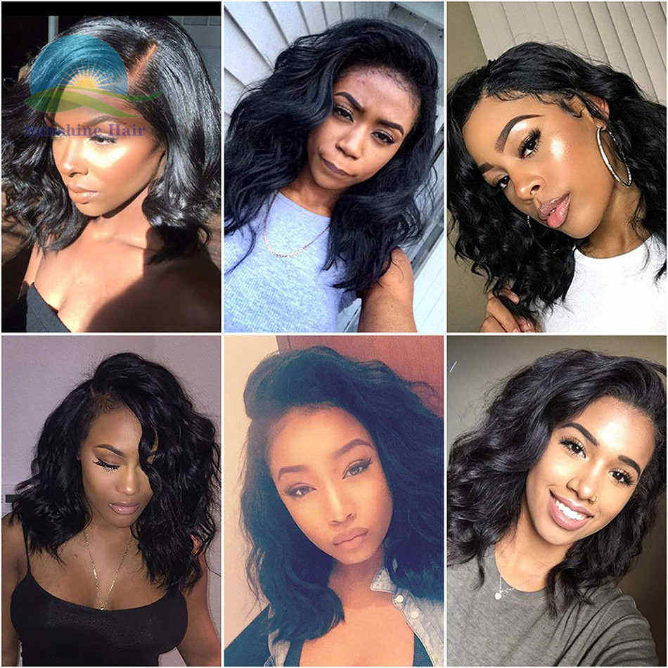 Parrucche vergini allineate perruque water wave crotchet jet capelli peruviani neri peruk bob parrucche frontali in pizzo corto per donne nere