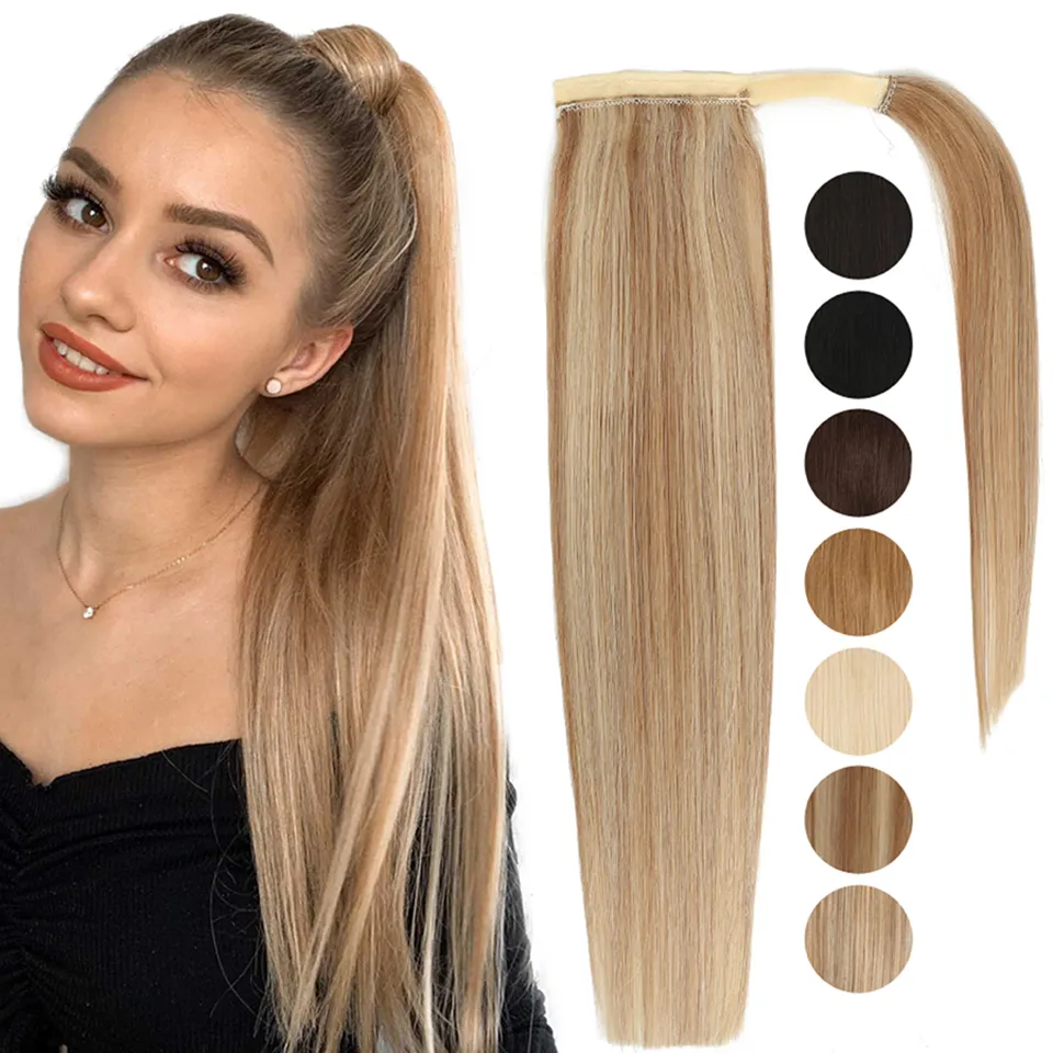 Coda di Cavallo in Capelli Umani Vergini Remy, Extension con Clip, Biondo Chiaro e Colori Misti, Tutti i Colori Disponibili