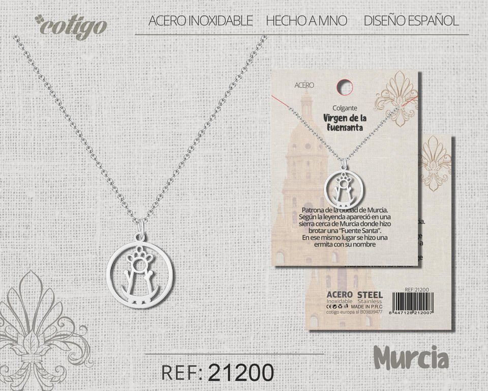 Virgin of Fuensanta Stainless Steel Religious Link Chain Fine Pendant Necklace Catholic Saint