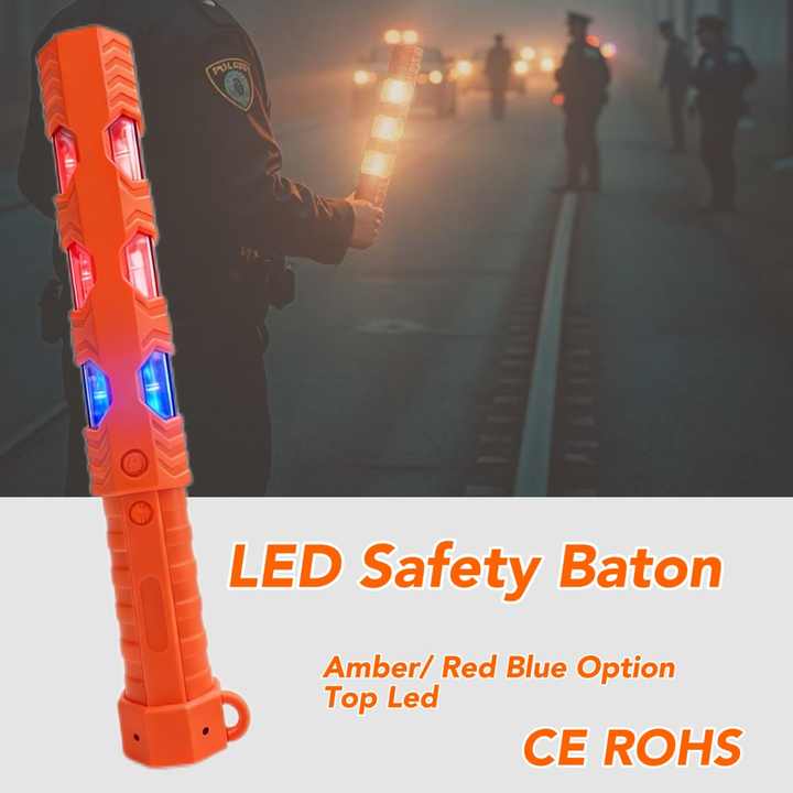 Bastone Luminoso Ricaricabile per Sicurezza Pubblica, Portatile con Magnete, LED di Emergenza per Segnalazione Stradale, Rosso Blu Ambra