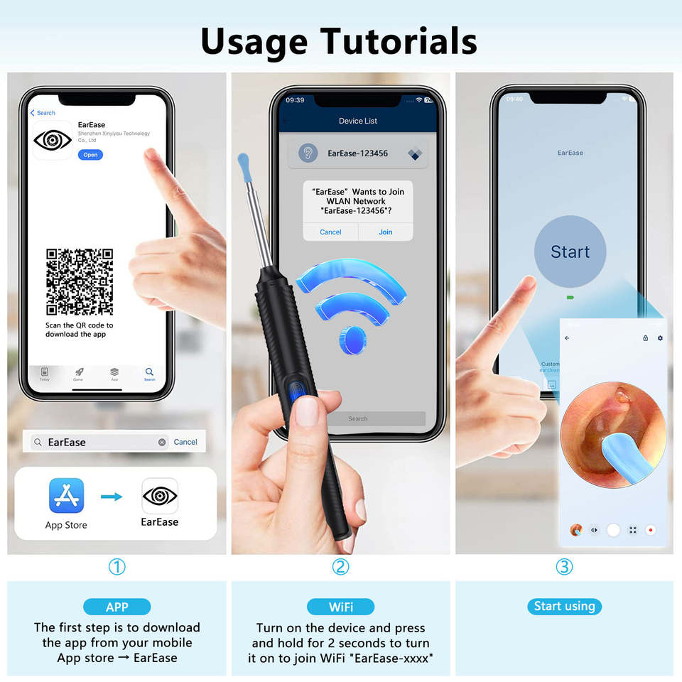 Telecamera Visiva 1296P HD 3.5MM WIFI per Pulizia Orecchie, Impermeabile con 6 LED, Strumento Digitale per Rimozione Cerume con Cucchiaio Endoscopico