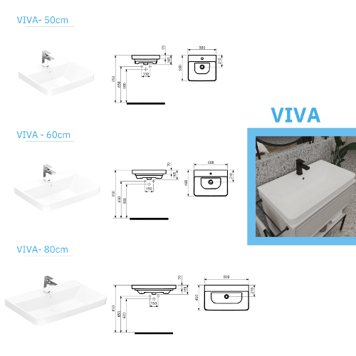 Viva Bathroom Sinks-50-60-80 Washbasin Series