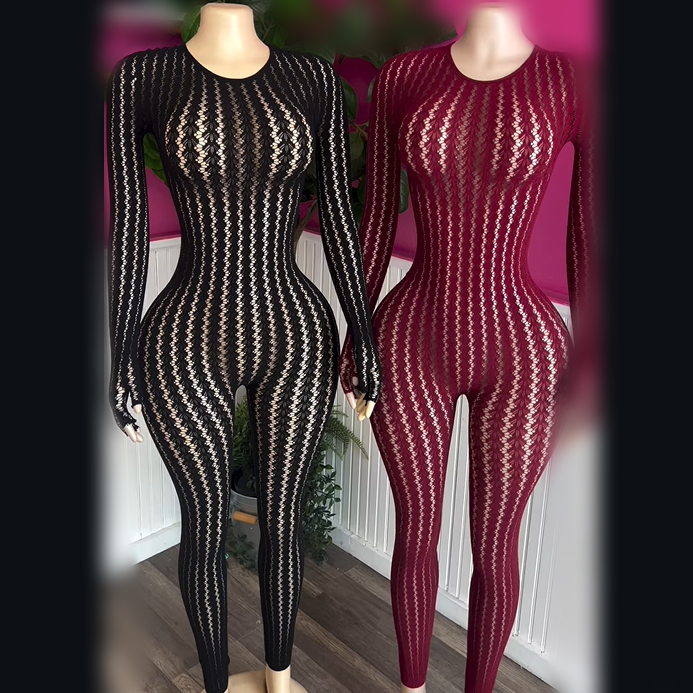 Viviblook Z1210JP01 Sexy Lingerie Fashion Seamless Striped Jacquard Jumpsuit Long Sleeved Party Jumpsuit For Women