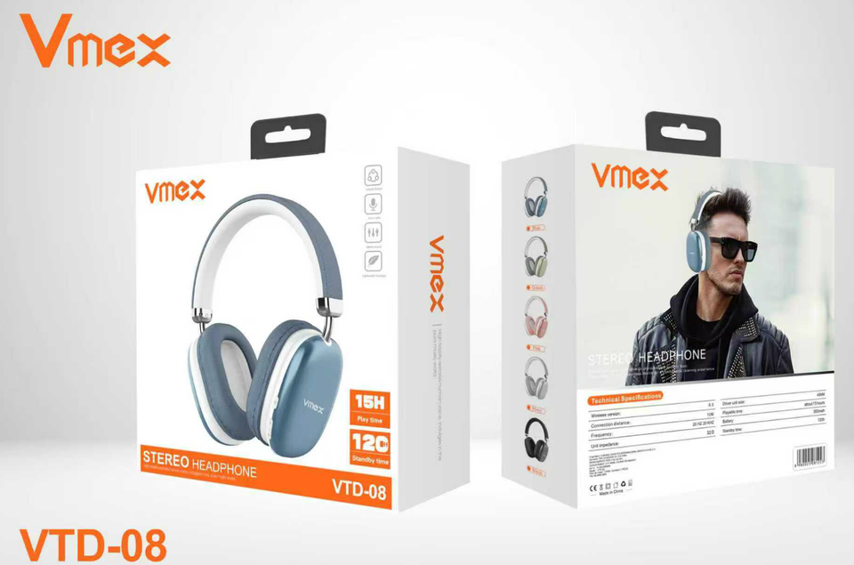 Cuffie stereo Vmex VTD 08 Bluetooth 4.2 con driver da 40 mm, cancellazione del rumore, 15 ore di riproduzione