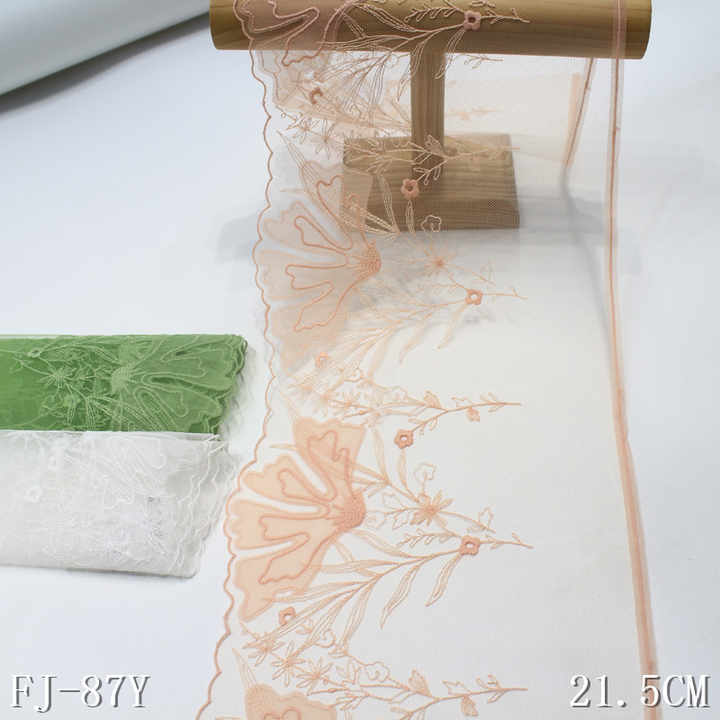 Voile Big Flower Fabric 22cm Wide Embroidery Lace White Tulle Embroidered Net Lace Trim for Women Dress Lingerie Accessories
